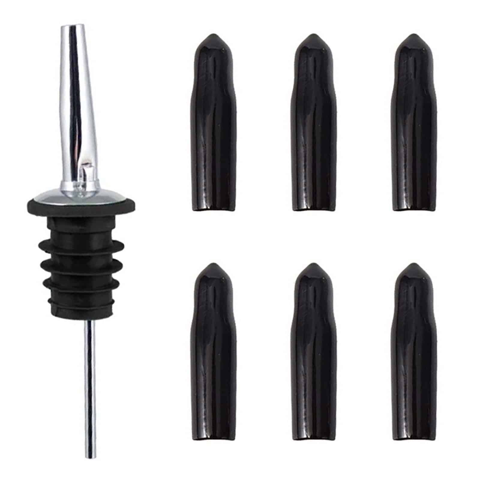 Black Rubber Dust Caps for Liquor Pourer Spouts – Set of 6 Caps