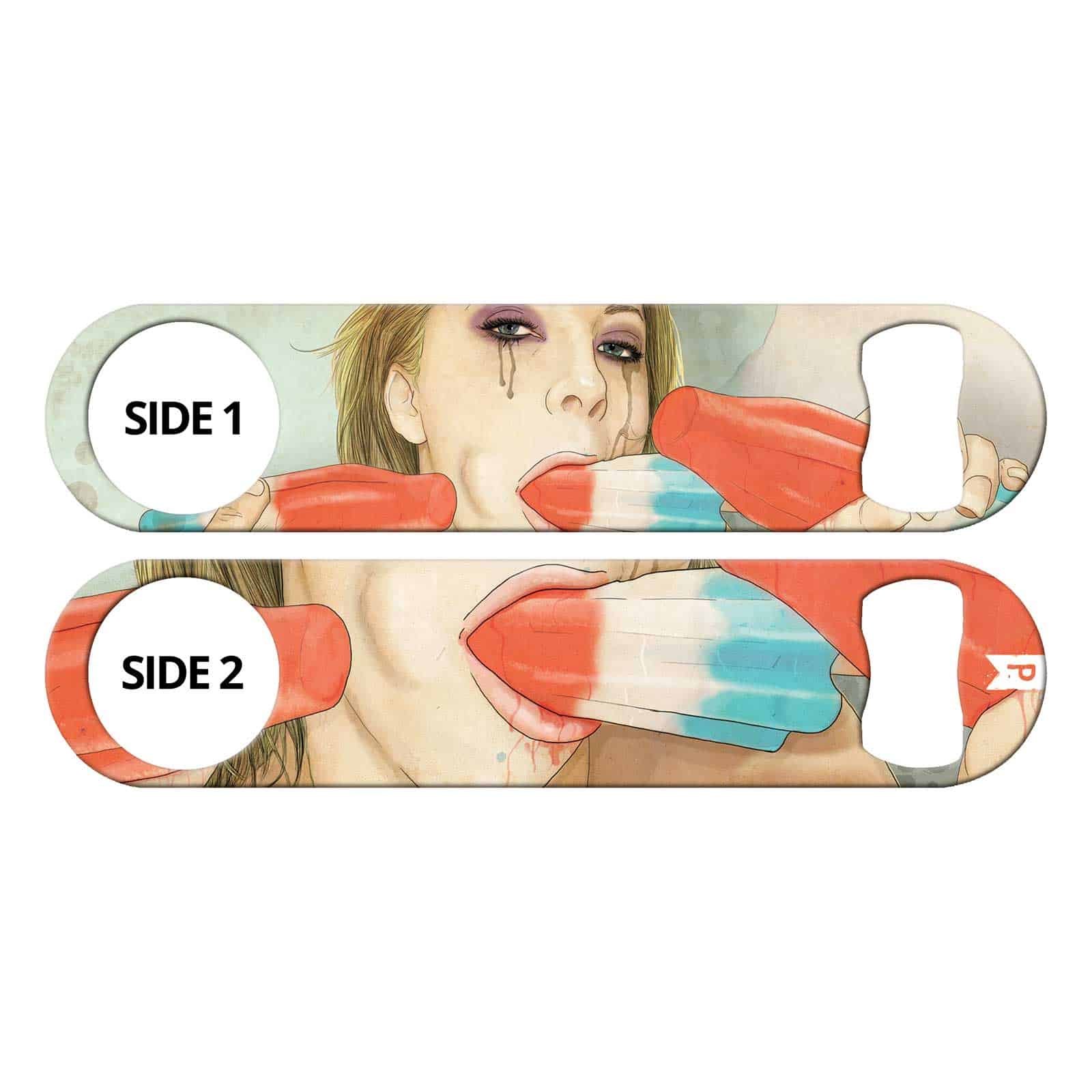 Bartender bottle opener featuring commissioned art by Keith P. Rein (The P is for Penis). Exclusive to Ink Correct! Unique bar tool for professional bartenders, as well as a great addition to your home bar! Personalize your speed opener by adding your name or line of text.