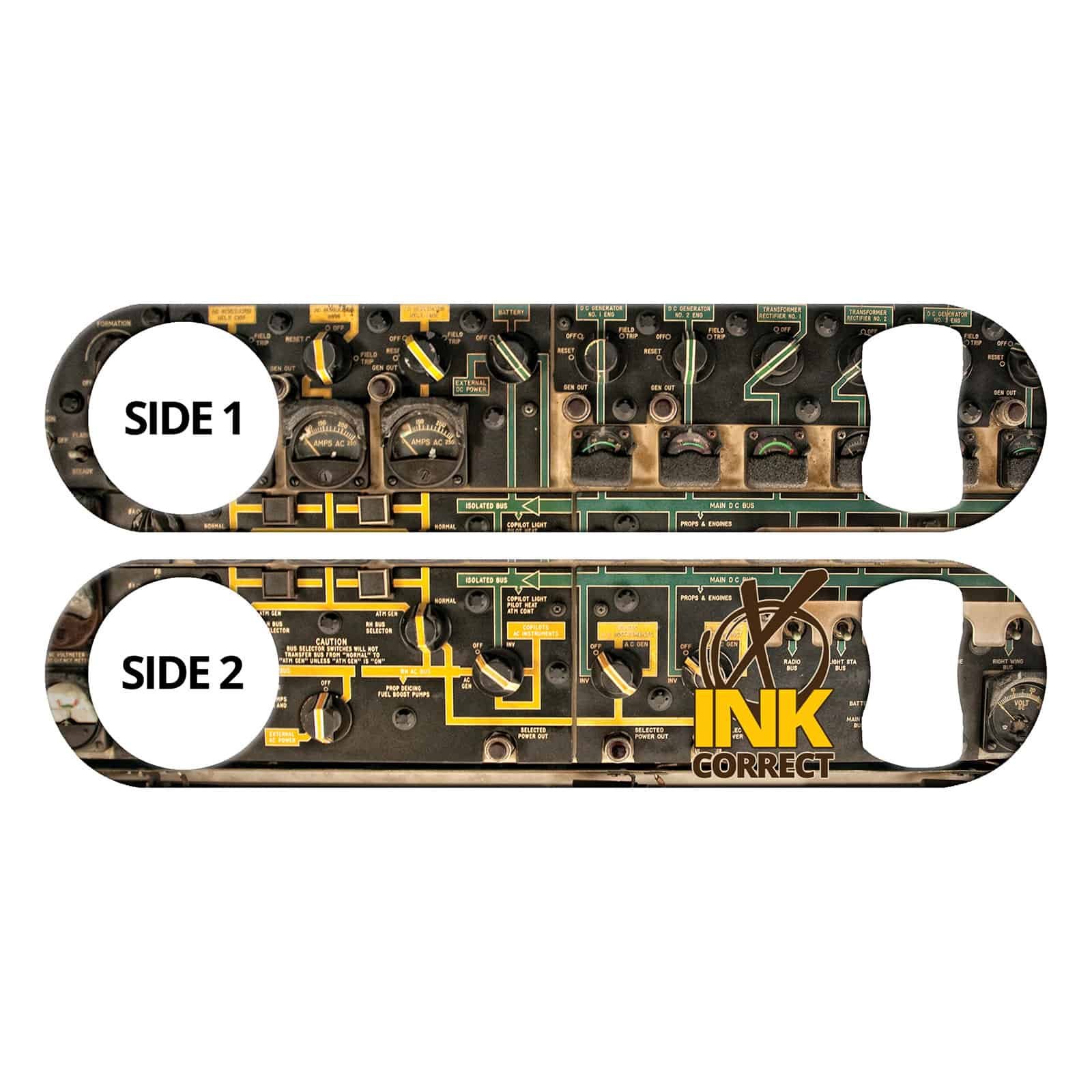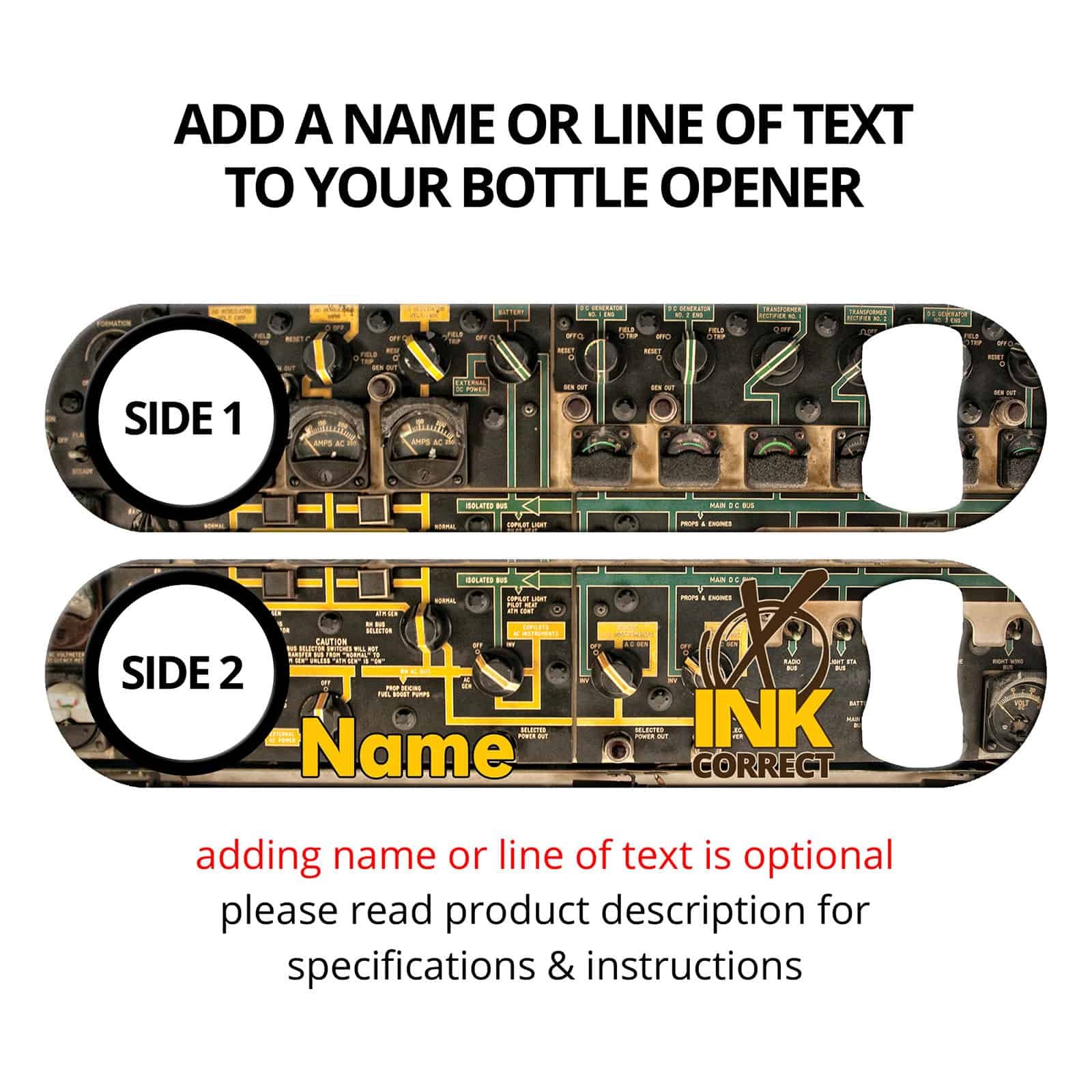 Grungy bartender bottle opener featuring control panel realistic background. Unique bar tool for professional bartenders, as well as a great addition to your home bar! Personalize your speed opener by adding your name or line of text.