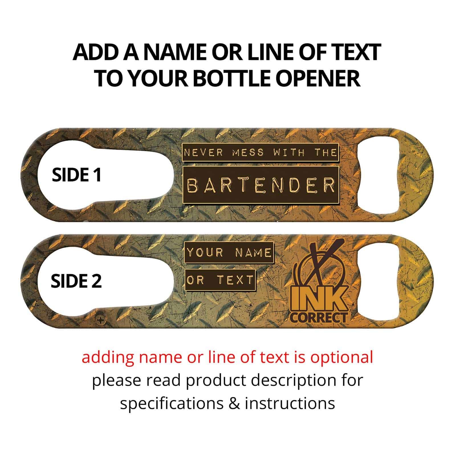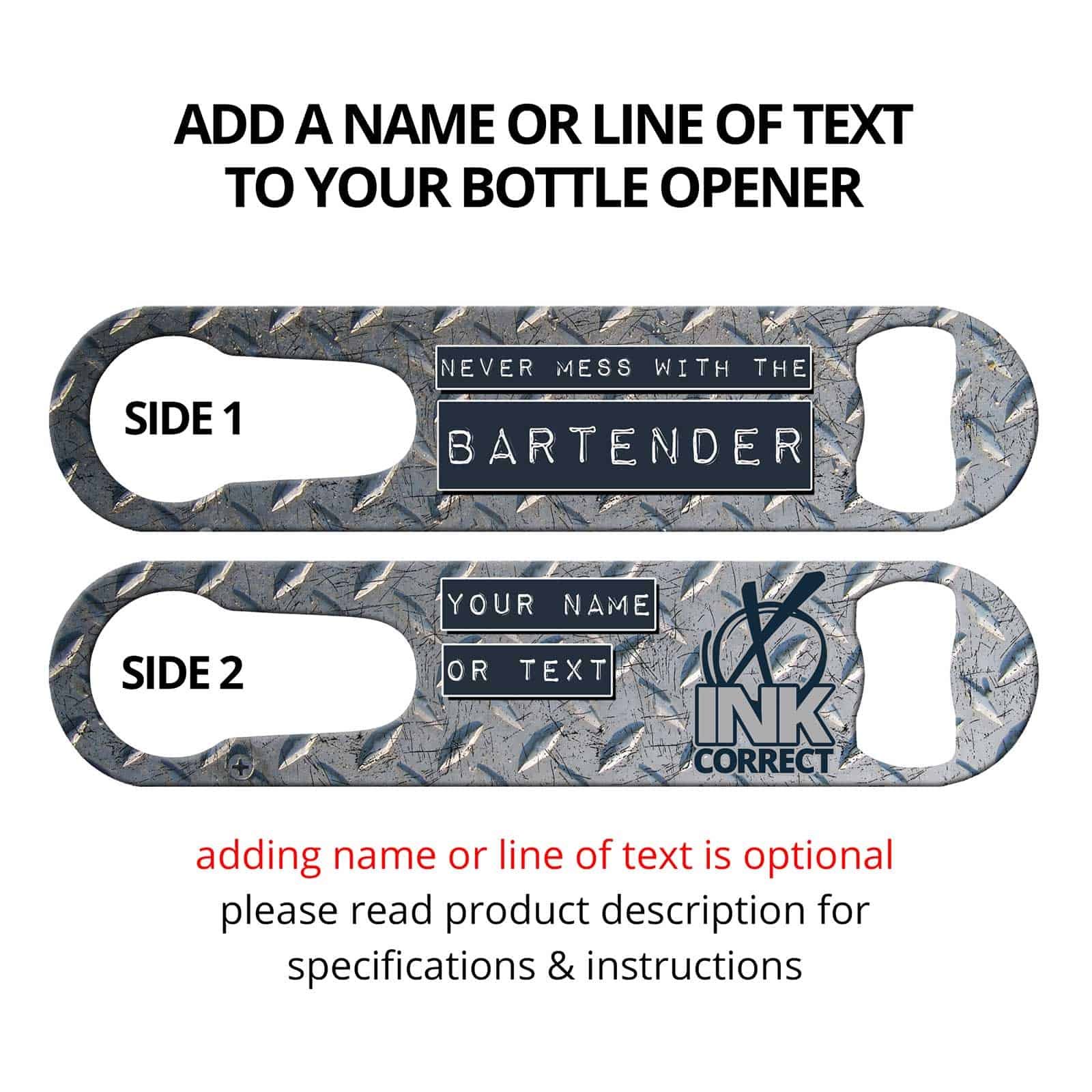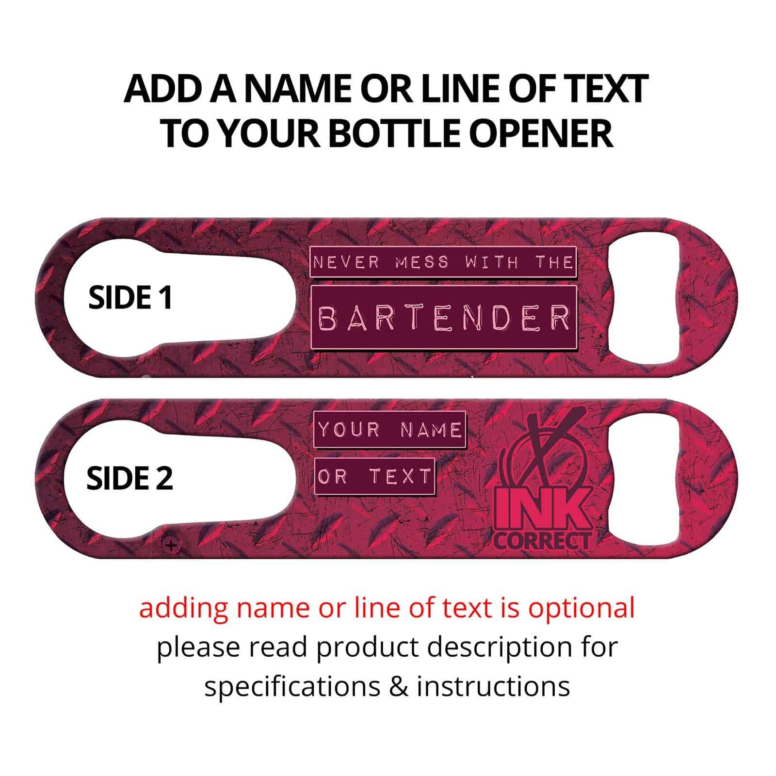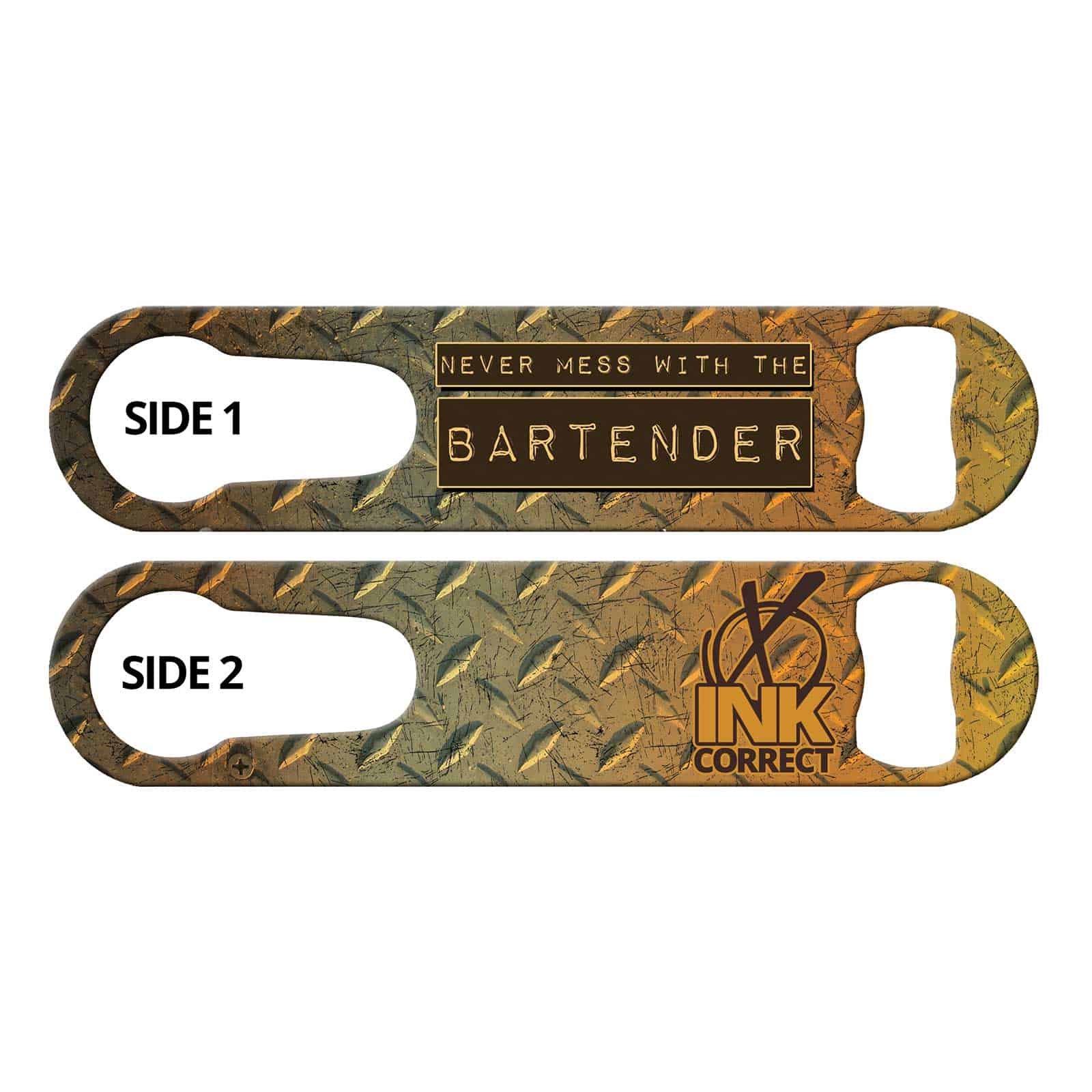 Our Inked Bartender Bottle Openers feature full-color designs wrapping around both sides of the bar keys. Hundreds of designs to choose from! Find the one that best describes your personality. The most unique beer bottle openers for the best prices in the market are right here at Ink Correct! Our cool bottle openers and bar tools are great gifts for your bartender friends and bar staff!