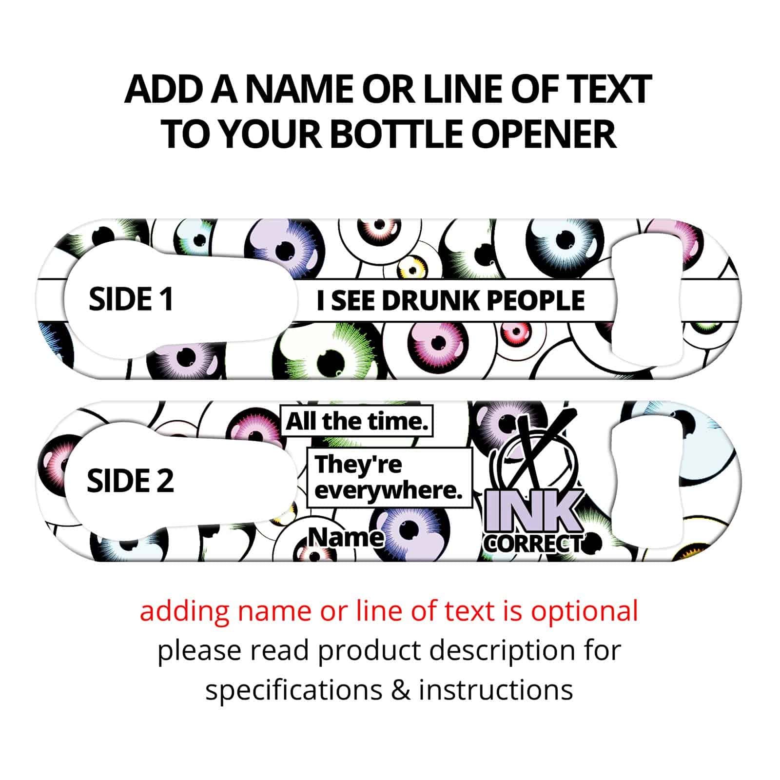 I see drunk people… All the time… They’re everywhere. Funny bartender bottle opener featuring you considering another profession. This multi purpose bar tool has a convenient built-in pour spout remover. Perfect for professional bartenders as well as the home bar! Personalize this church key opener by adding a name or line or text.