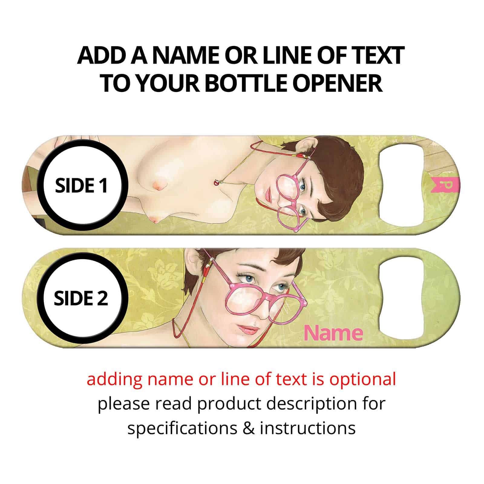 Bartender bottle opener featuring commissioned art by Keith P. Rein (The P is for Penis). Exclusive to Ink Correct! Unique bar tool for professional bartenders, as well as a great addition to your home bar! Personalize your speed opener by adding your name or line of text.