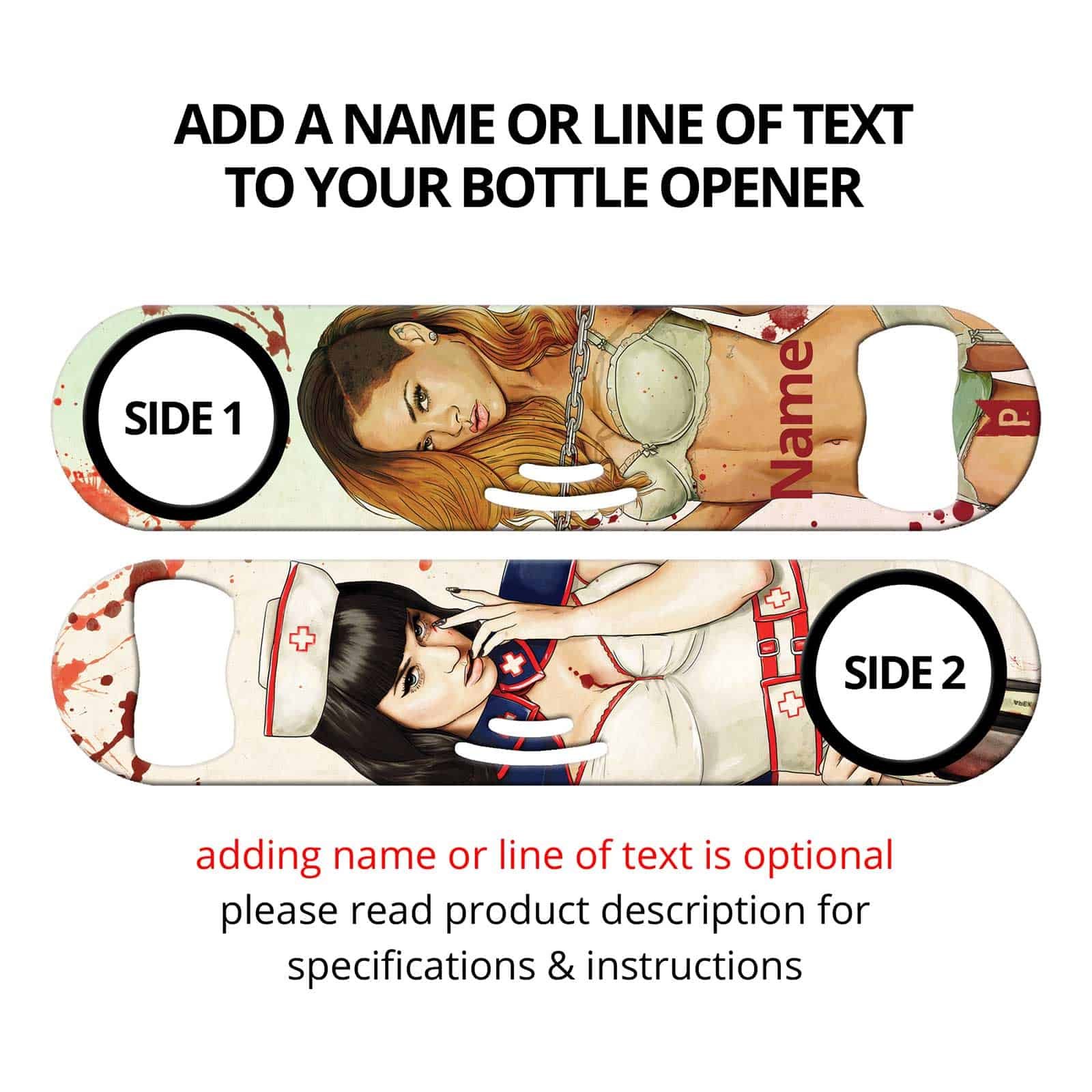 The ultimate bar tool for any busy bar or restaurant! The beer openers bartenders just can’t live without! Our Inked Speed Openers are the way to go behind any busy bar, absolutely a must have for a quick and productive pace. Only professional top of the line custom artwork. Approximately 7 x 1.25 inches. Satisfaction guaranteed or your money back!