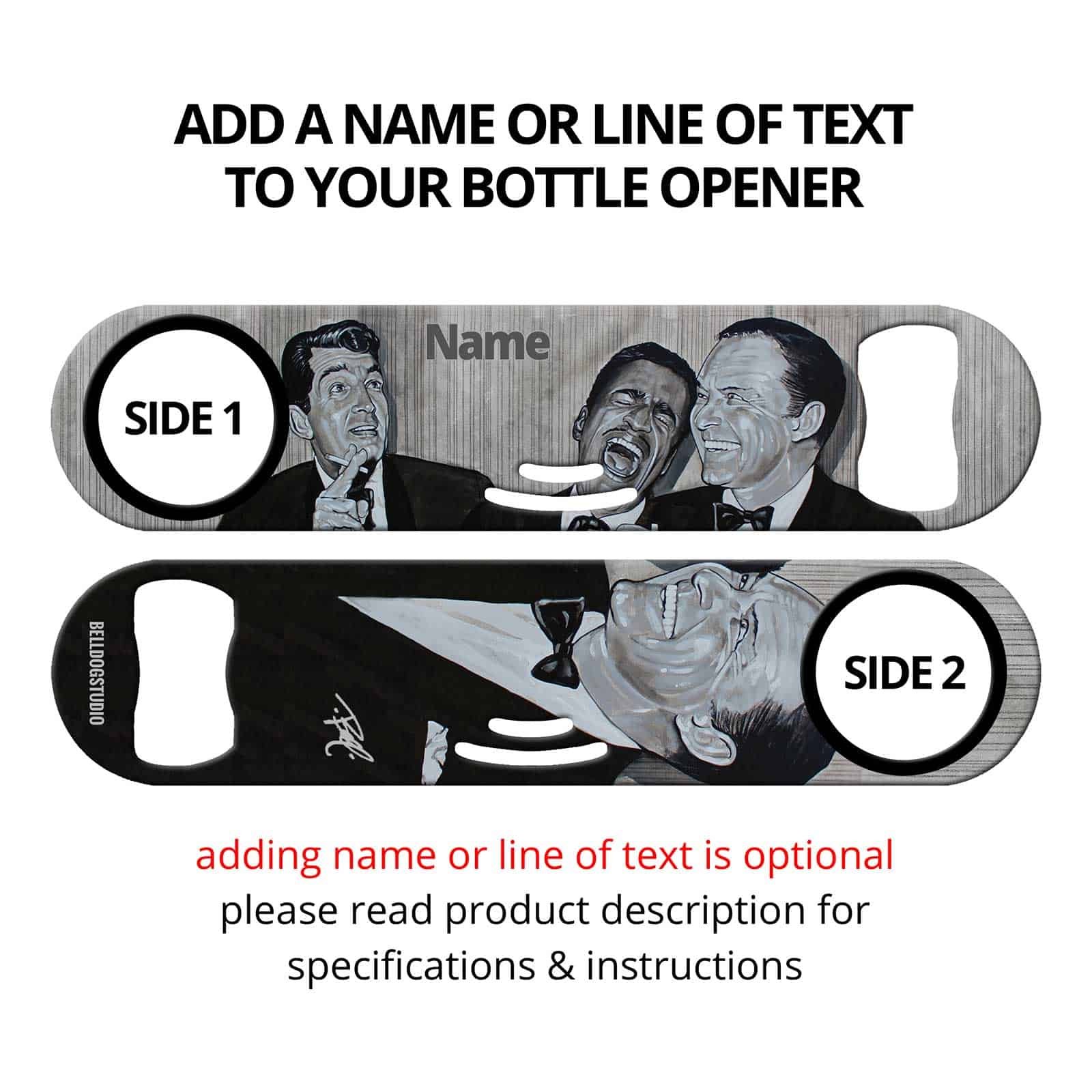 Add a name or line of text to your mambas and make them your own! Never lose your bottle opener again and keep it from being stolen! Perfect gift for co-workers and bar staff! Add your restaurant or bar name and advertise your brand!