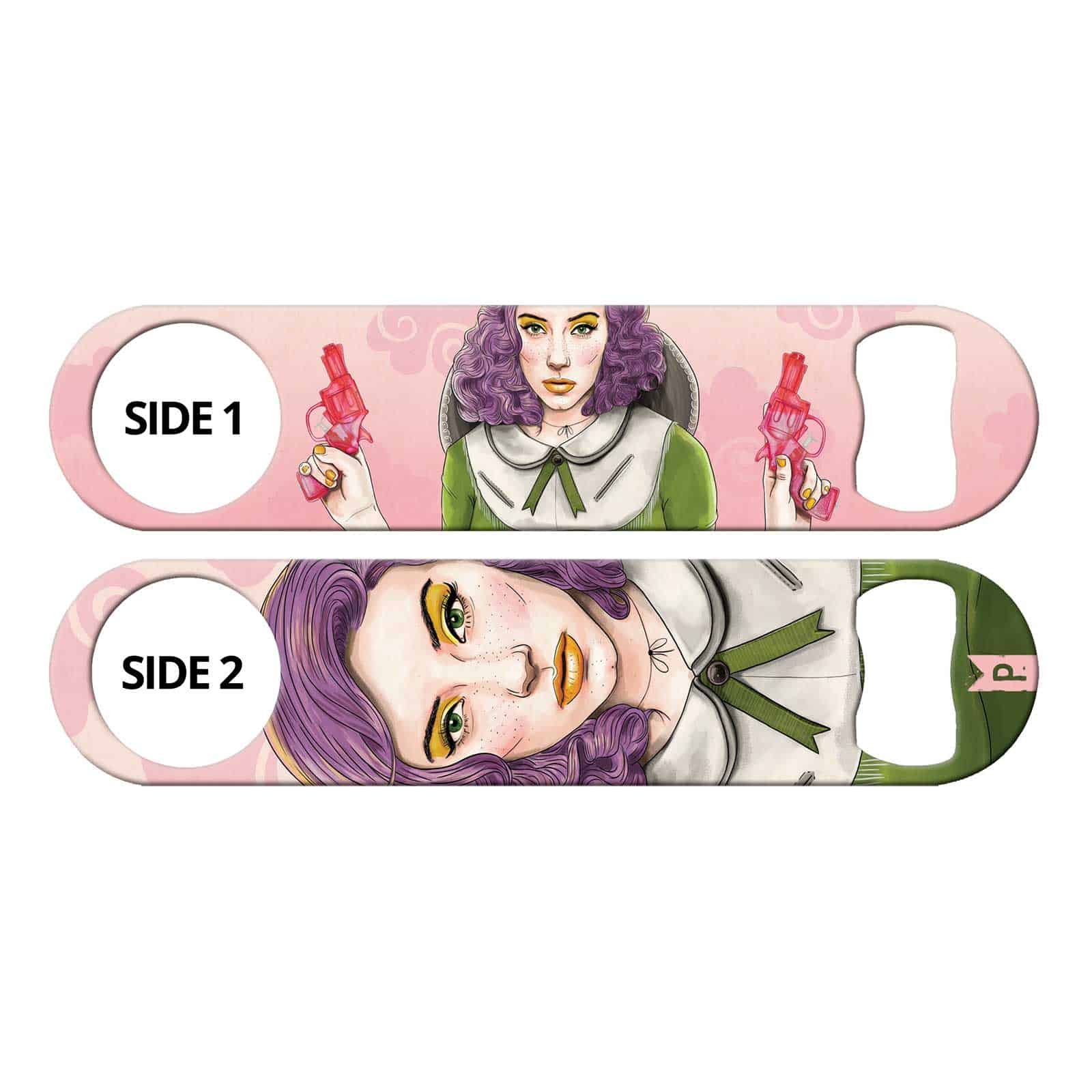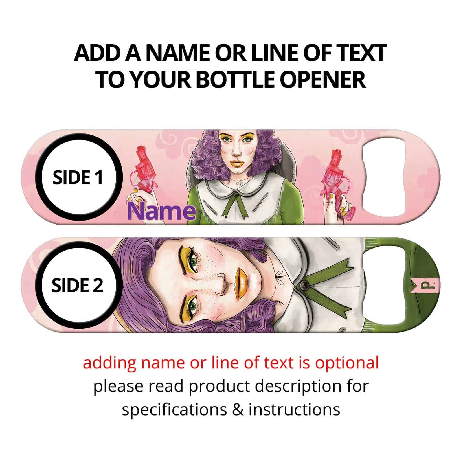 Bartender bottle opener featuring commissioned art by Keith P. Rein (The P is for Penis). Exclusive to Ink Correct! Unique bar tool for professional bartenders, as well as a great addition to your home bar! Personalize your speed opener by adding your name or line of text.